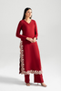 Clara features a striking maroon base enriched with white embroidered borders on the sides and hem. Finished with a scalloped neckline and straight trousers, it carries a composed allure perfect for festive evenings.