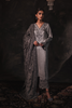 Indulge in opulence with Mizal, crafted with an embroidered front on Bamber Raw Silk and adorned with velvet patti for the sleeves and trouser. Finished with a luxurious embroidered velvet shawl, this ensemble is designed for festive sophistication.